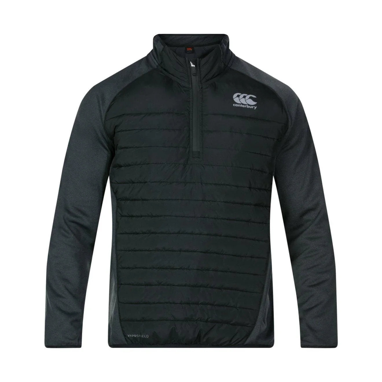 Embrace the elements: The Vaposhield Hybrid 1/4 zip combines warmth with Canterbury's Vaposhield Water Repellency Technology. Zoned core insulation provides ultimate lightweight warmth whilst the Vaposhield Technology repels water away from the fabric surface.
