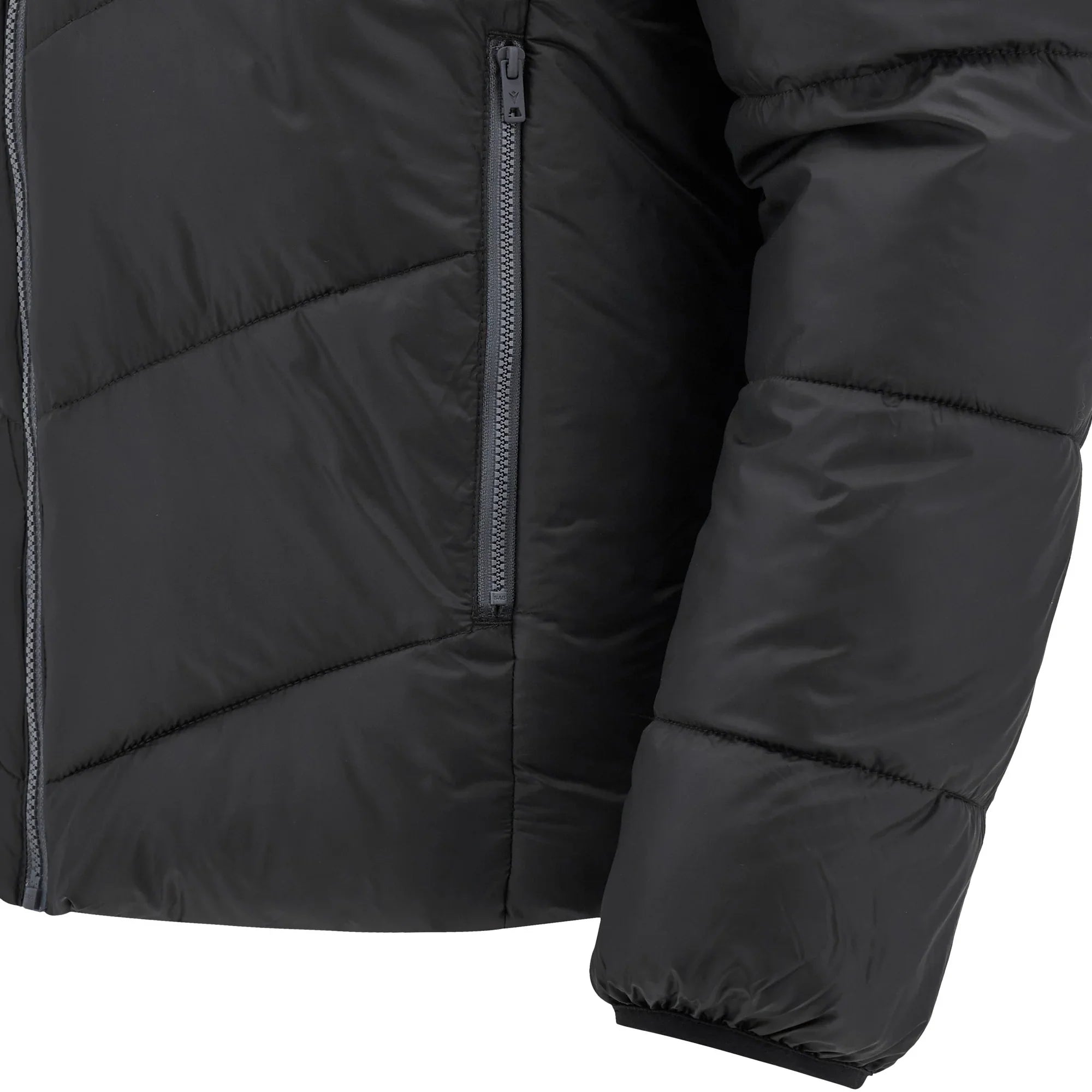 - Padded bomber-style jacket with full-zip front.