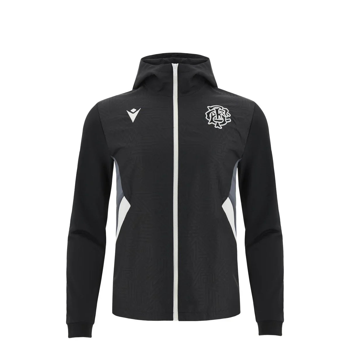• Lightweight full-zip design with tone-on-tone pattern and grey/white flank inserts