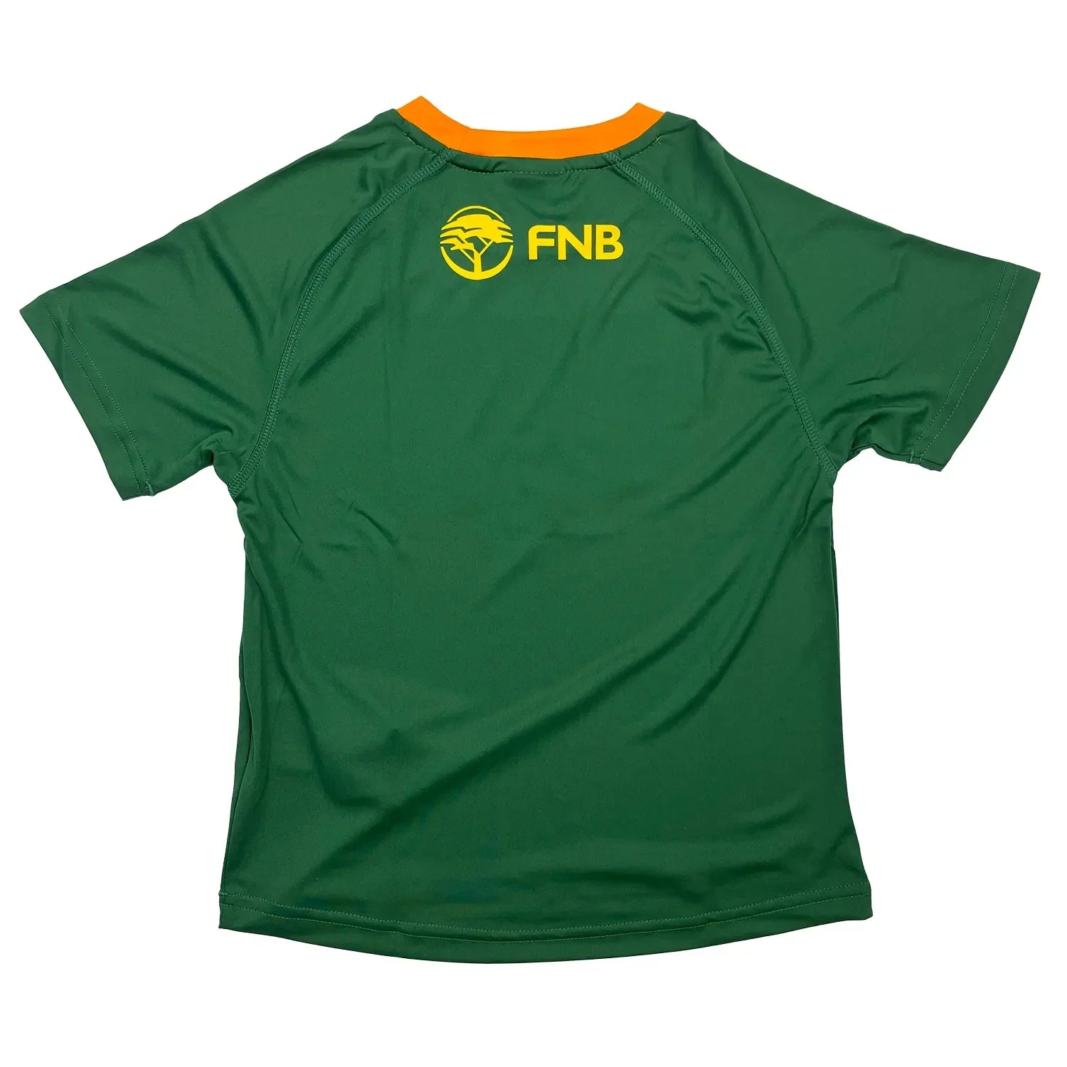 The ASICS South Africa Springboks Kid's Home Short Sleeve Fan T-Shirt exudes a vibrant and iconic style, proudly showcasing the team's colours and emblem. The striking green backdrop, adorned with yellow trim, creates a visually appealing and unmistakable look. The incorporation of these colours pays homage to South Africa's rugby heritage, making it an emblematic piece for devoted fans. The placement of the South Africa rugby badge on the left chest and the Springboks logo on the right chest is a testament to attention to detail and adds an authentic touch to the T-shirt.