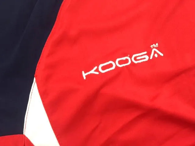 - Design includes: navy shoulders, white side panels, white shirt with Kooga logo in white on chest