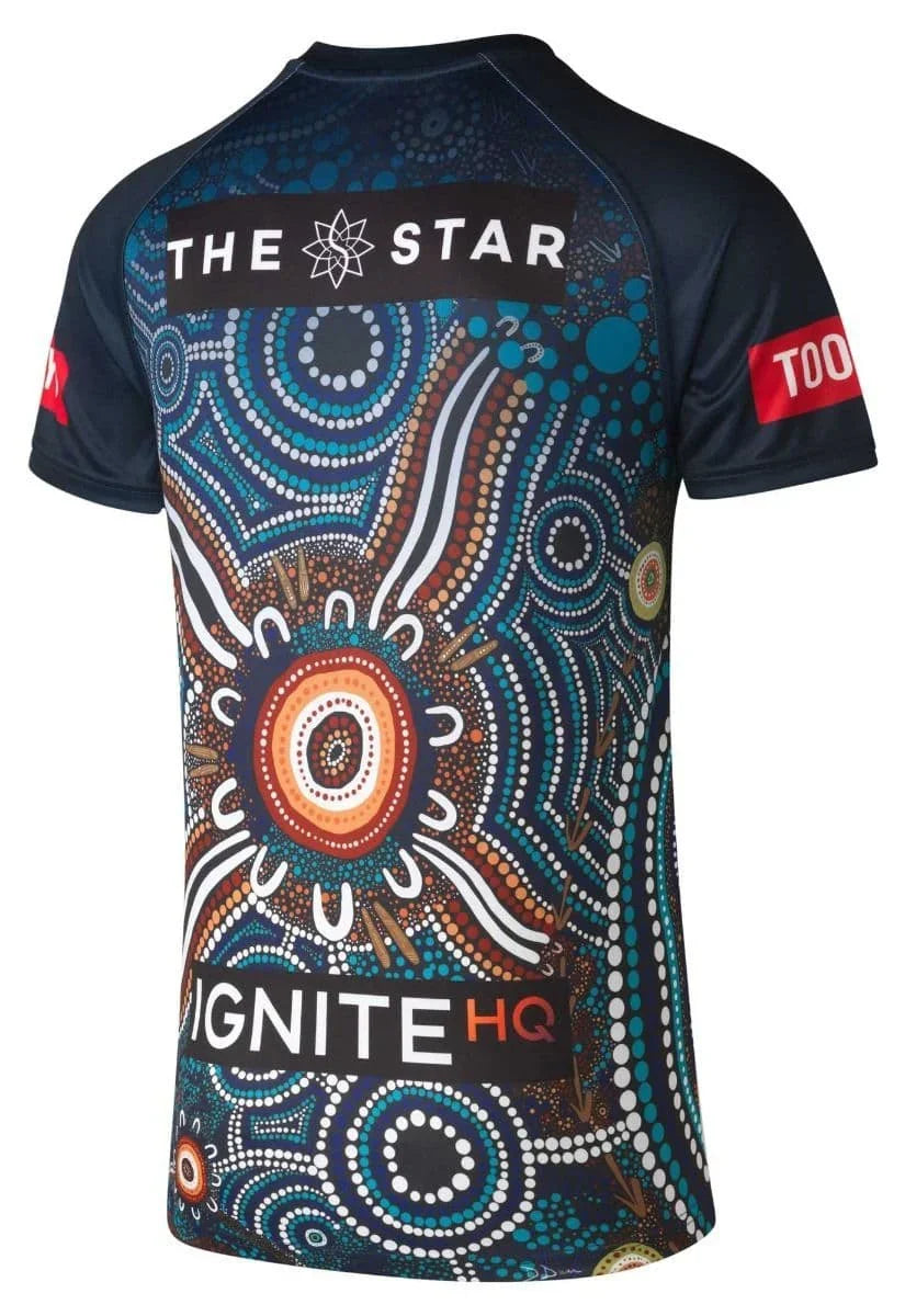 Experience the powerful fusion of Indigenous Australian art and professional rugby performance with the 2023 NSW Blues Indigenous Rugby Shirt by Puma. This stunning player-fit jersey features an intricate Indigenous artwork design with mesmerizing circular patterns in turquoise, brown, and white, symbolizing the deep connection between rugby and First Nations culture. Crafted with Puma's elite performance technology and worn by the Blues during Indigenous round, this jersey offers the same professional cut and technical features trusted by NSW players on the field.