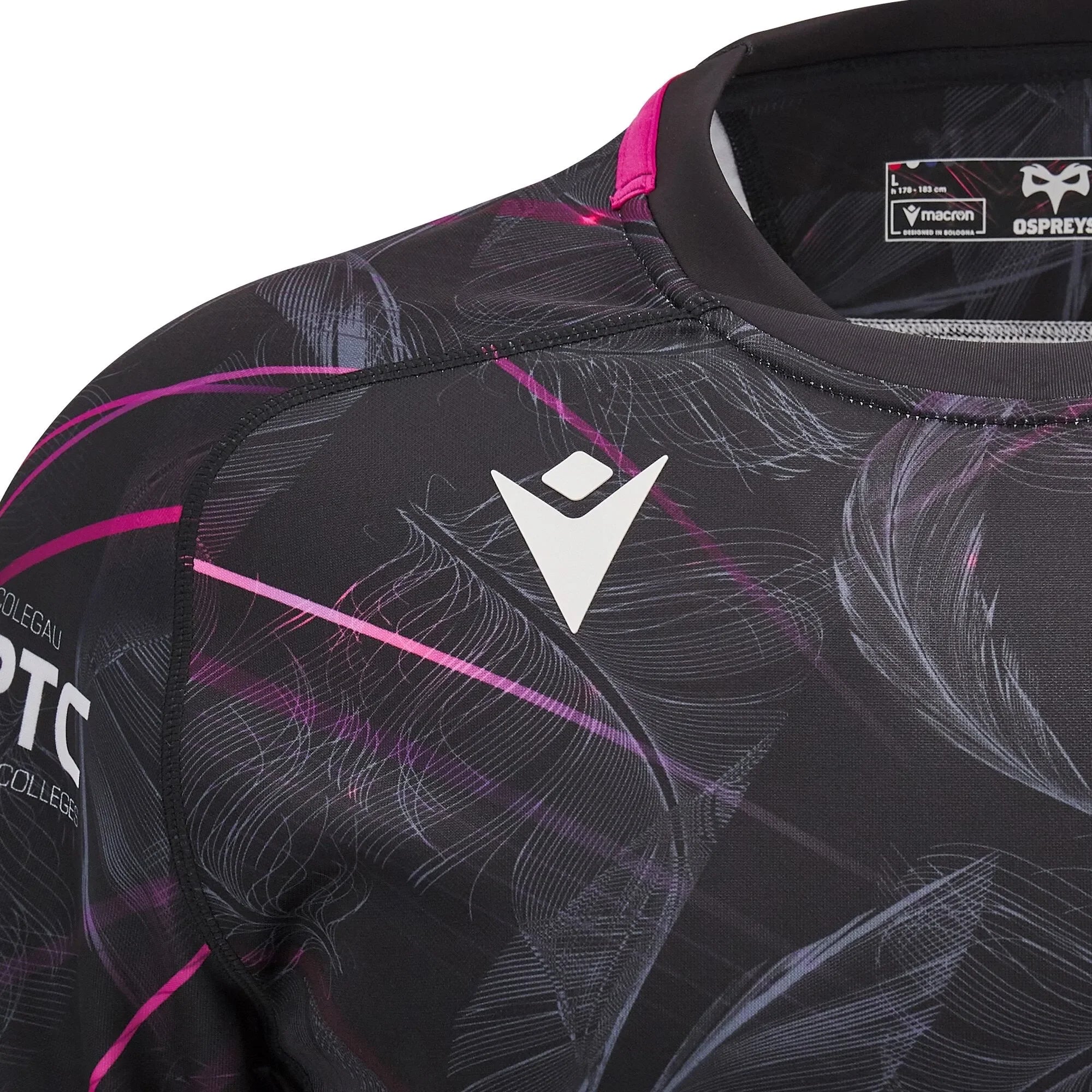 The Macron Ospreys Rugby 2024/25 Adults Home Rugby Shirt combines modern design with authentic club pride. Featuring a dynamic black and purple graphic pattern, this shirt delivers standout style on and off the pitch. Made from lightweight, breathable performance fabric, it ensures comfort through every match or training session.