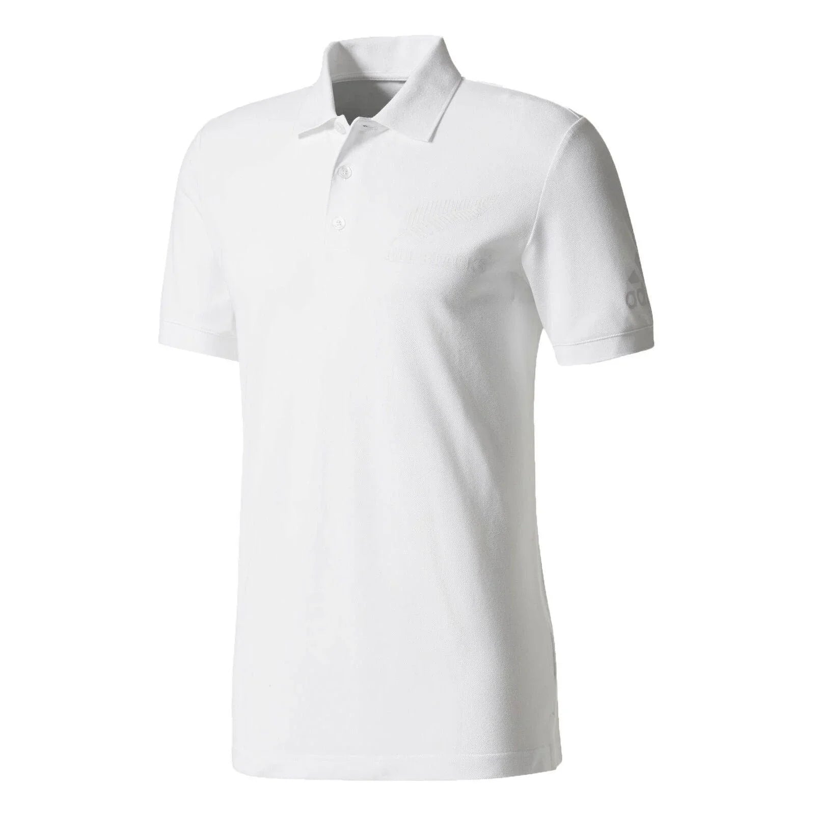 Zeigen Sie Ihre Qualifikation als 16. Mann, wenn Sie das neuseeländische Rugby-Union-Team unterstützen. Dieses Herren-Poloshirt mit geripptem Kragen und Knopfleiste mit drei Knöpfen zeigt ein dezentes All Blacks-Wappen auf der Brust.