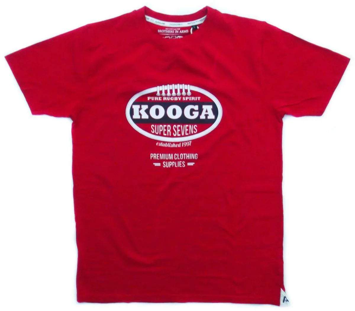 Auch wenn Sie nicht spielen, können Sie mit dem Kooga Premium Off Field T-Shirt Rugby unterstützen. Dieses schlichte rote Angebot aus 100 % Baumwolle ist Teil der „Brothers in Arms“-Reihe von Kooga und das ideale Freizeitangebot für jeden Rugby-Fan. In der Mitte des Trikots befindet sich ein Kooga Super Sevens-Print, ein einfaches, aber unverwechselbares Design, das am Strand, beim Anschauen eines Spiels oder einfach auf der Hauptstraße zu Hause ist.
