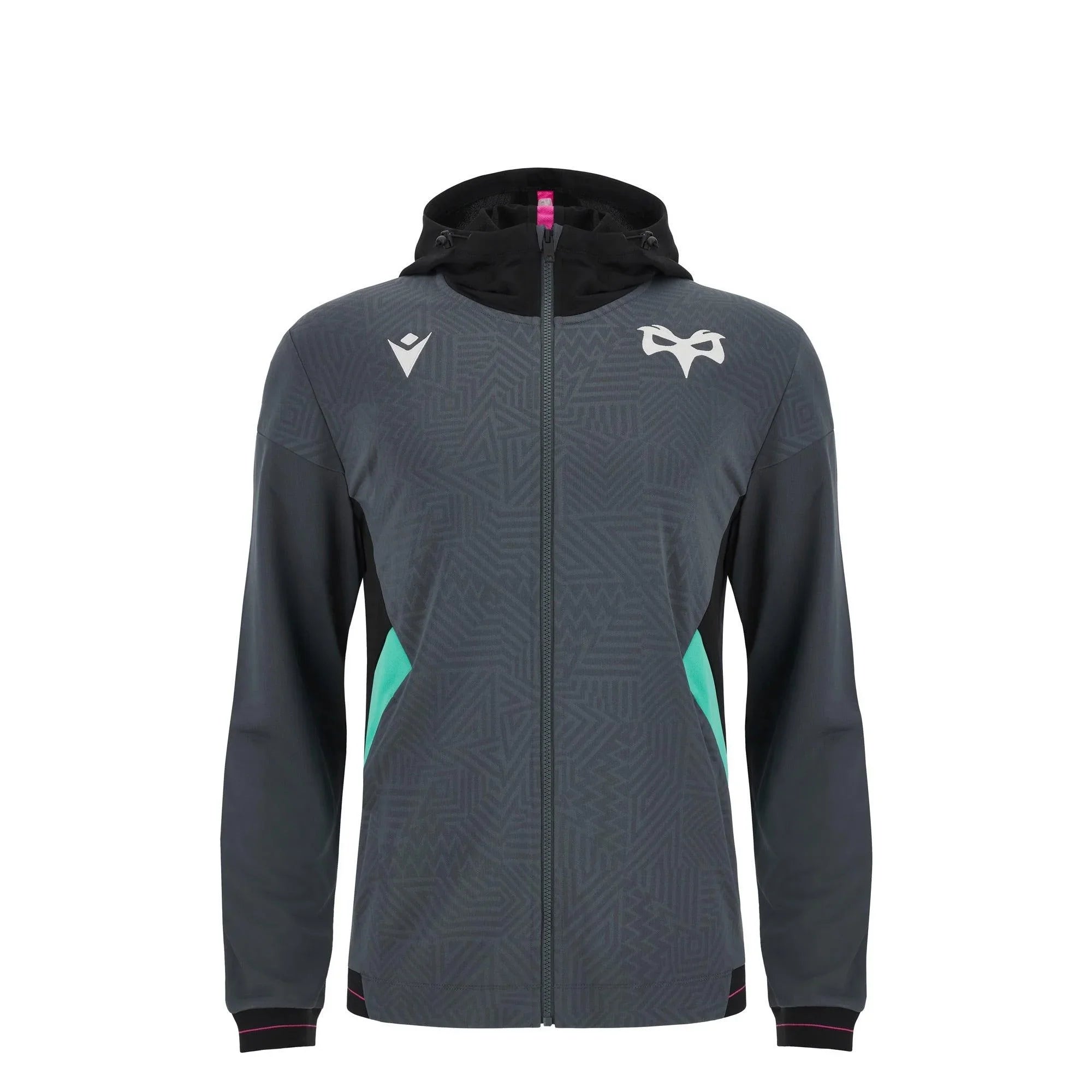 In summary, the Macron Ospreys 23/24 Kids Travel Full Zip Hoody in Grey is the perfect combination of style, comfort, and team pride. Elevate your child's rugby apparel collection with this versatile hoody, allowing them to proudly display their Ospreys support with confidence.