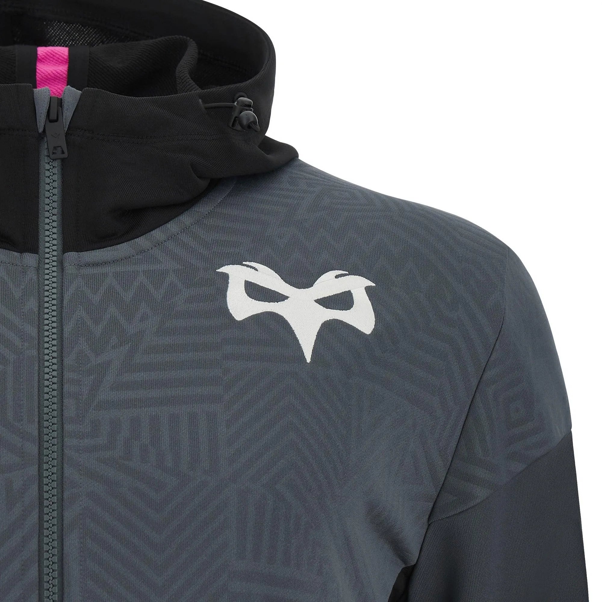 Introducing the Macron Ospreys 23/24 Kids Travel Full Zip Hoody in Grey – a stylish and cosy choice for your young Ospreys fan's adventures.